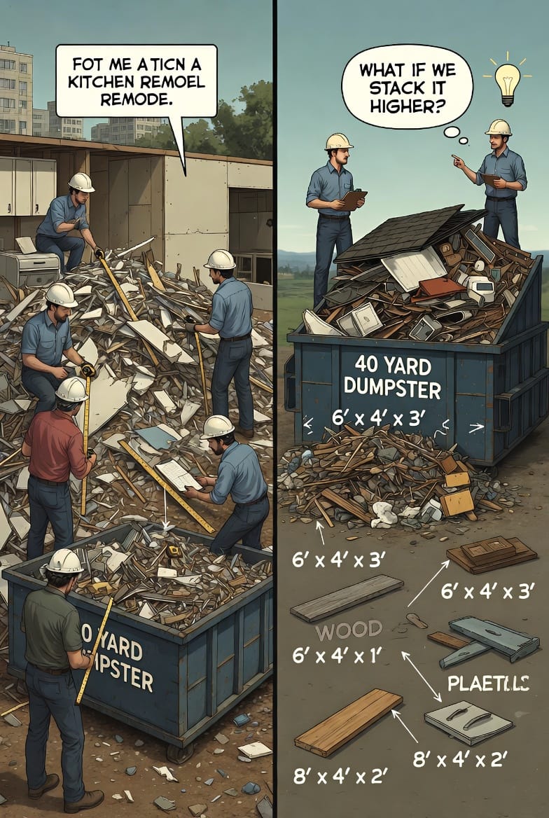 Calculating your dumpster needs doesn't require complex math—our simple formula and examples make it accessible. Start by estimating your debris volume using this cubic yard calculator method: