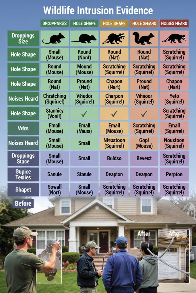 - Compare Clues: Match patterns—e.g., dawn scratching + small holes + pellet droppings = squirrels.