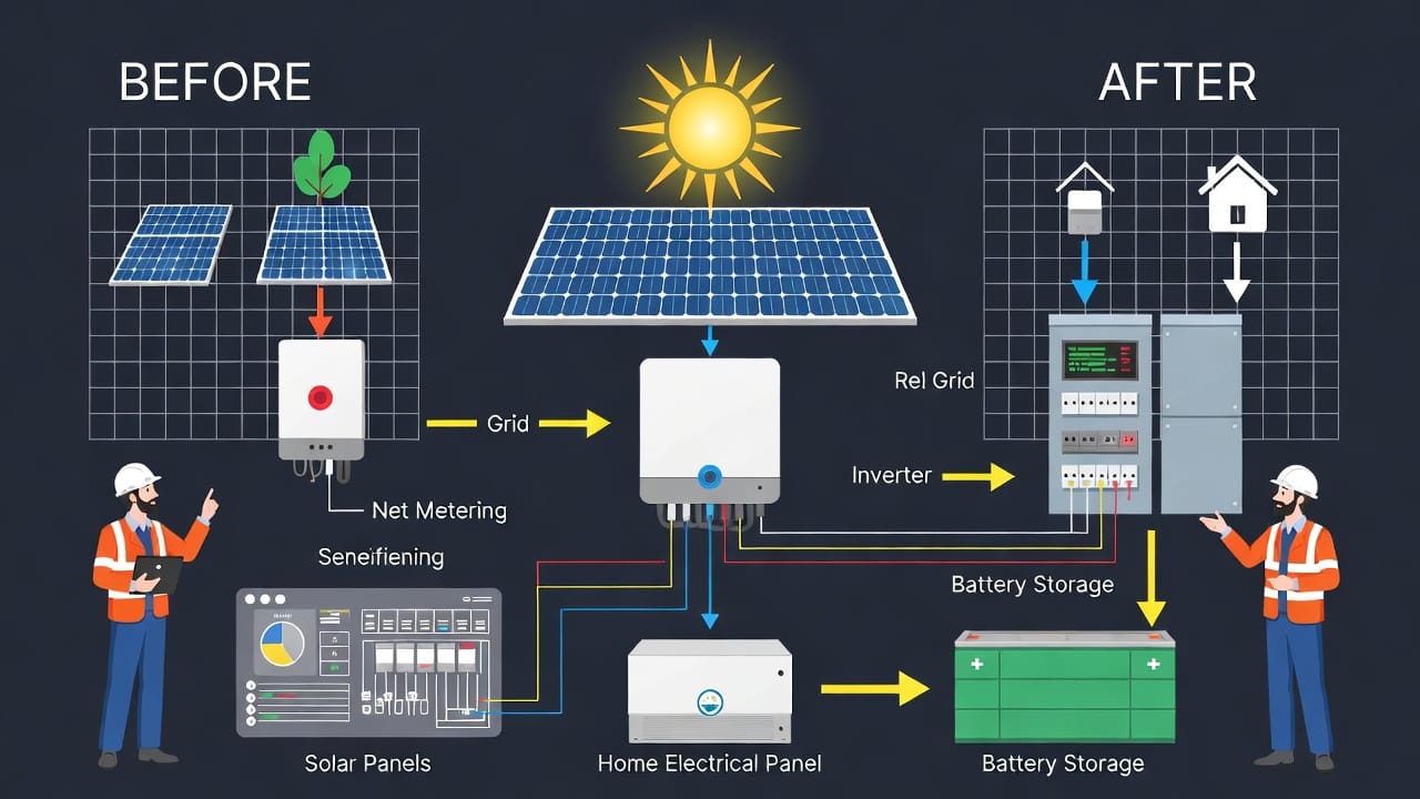 How do they integrate? Energy from panels flows to the inverter, then to batteries for storage. During low production, batteries discharge to power your home, reducing reliance on the grid. This setup can qualify for incentives like the federal Investment Tax Credit (ITC), currently at 30% through 2032. Importantly, batteries mitigate time-of-use rates, where utilities charge more during evenings – storing cheap daytime solar for expensive nighttime use. With proper sizing (based on your daily consumption, often 10-20 kWh for average homes), batteries ensure your system pays off faster, offering security in an unpredictable energy landscape.