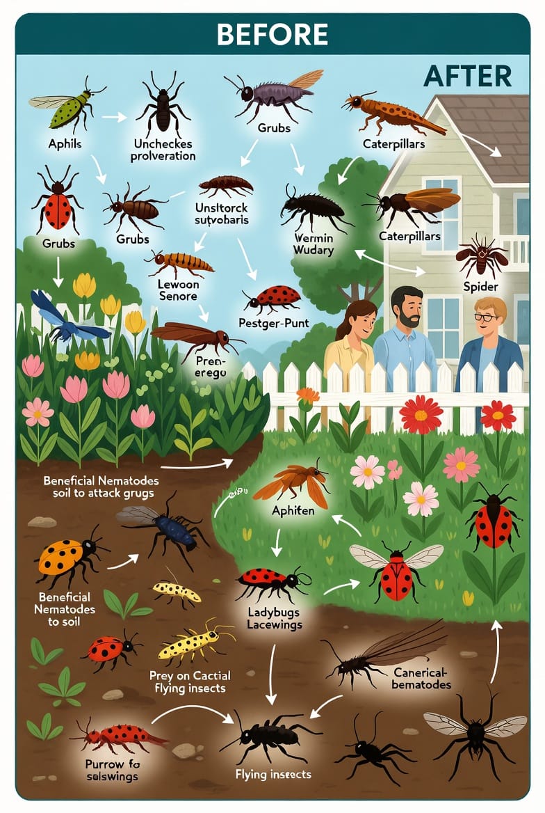 Consider a typical backyard scenario: Grubs damaging roots lead to weakened plants susceptible to aphids. Introducing nematodes curbs the grubs, strengthening plants, while ladybugs and lacewings mop up aerial pests. Over time, this fosters resilience—native predators may even establish permanent populations, reducing the need for repeated releases.