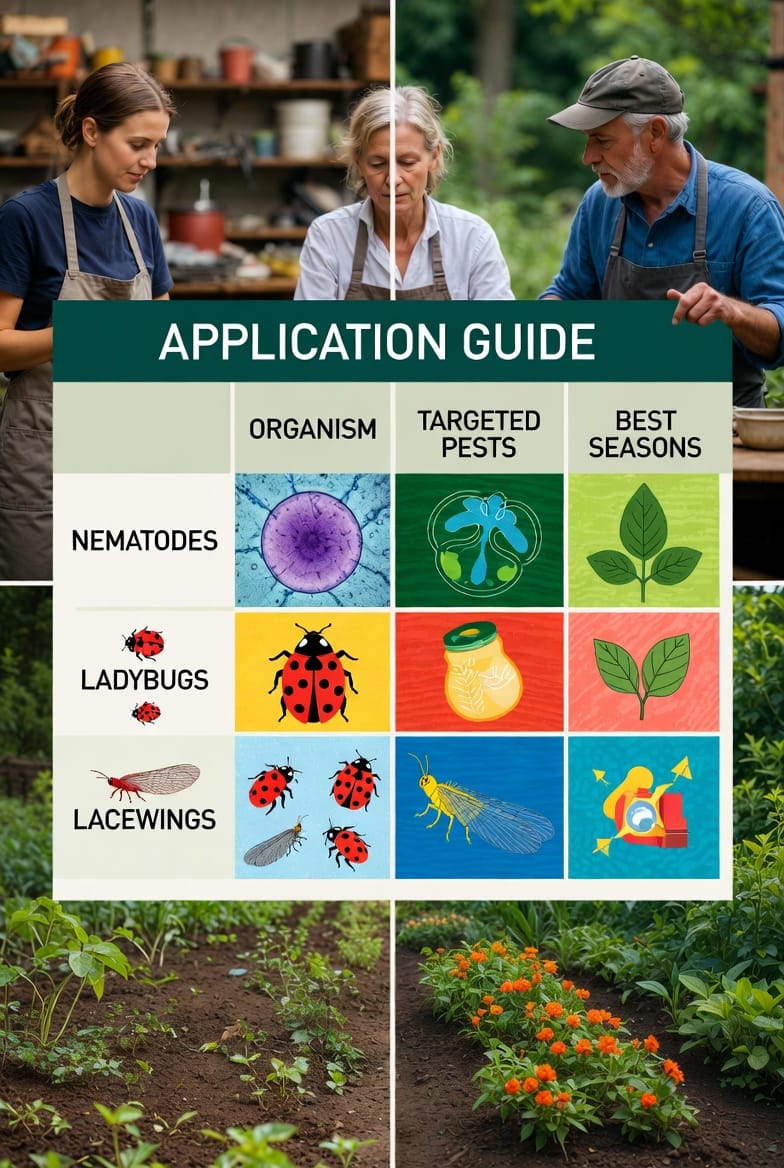 For nematodes, dilute in non-chlorinated water and apply evenly; follow up with light watering. Predatory insects arrive in containers—gently shake them onto plants. Timing is crucial: Release during mild weather to avoid extremes that stress the organisms.