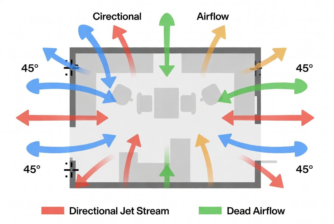 ⚠️ Risk alert: Directional patterns can create dry shadows behind furniture or opened cabinets. Always move obstructions or install mini air scoops (small 4-inch fans) in blind spots.