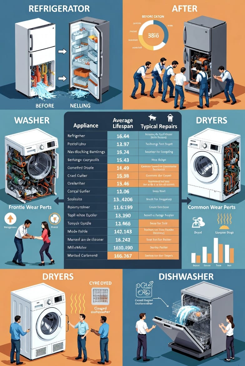 Knowing common failure points helps predict if a repair is a band-aid or a cure. Each appliance has vulnerabilities: