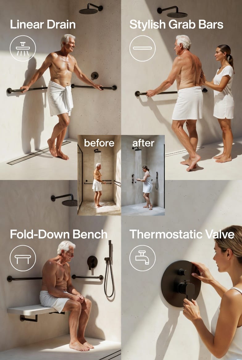 A beautifully executed barrier-free shower transforms your bathroom from a functional necessity into a daily sanctuary. It protects your family’s safety, preserves your independence, and adds lasting value to your home — all while delivering the style you deserve.