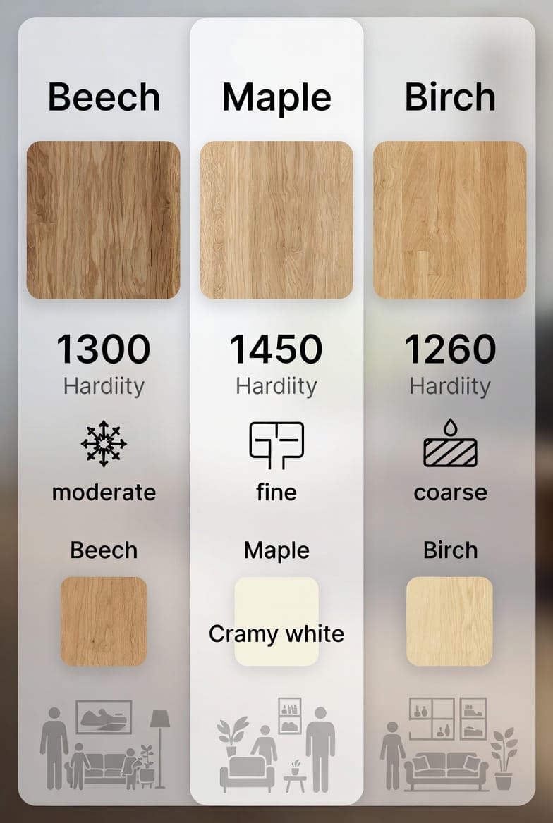 To truly appreciate beech’s strengths, it helps to see how it measures up against two other popular light-colored hardwoods.