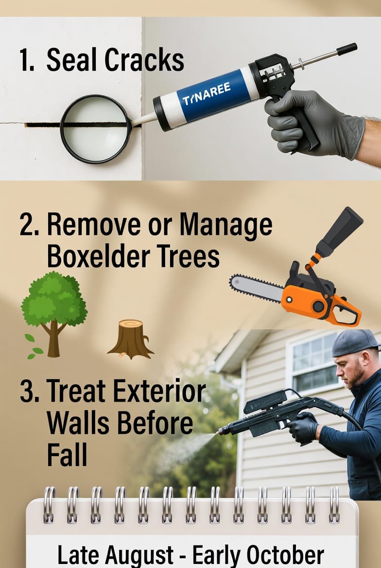 Why this works: Residual products remain active for 30–90 days, killing boxelders on contact as they attempt to cross the barrier.