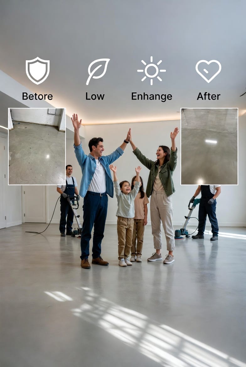 When done correctly, the result is a floor that feels luxurious underfoot yet requires far less attention than traditional options. Many clients tell us they wish they had chosen concrete polishing years earlier.