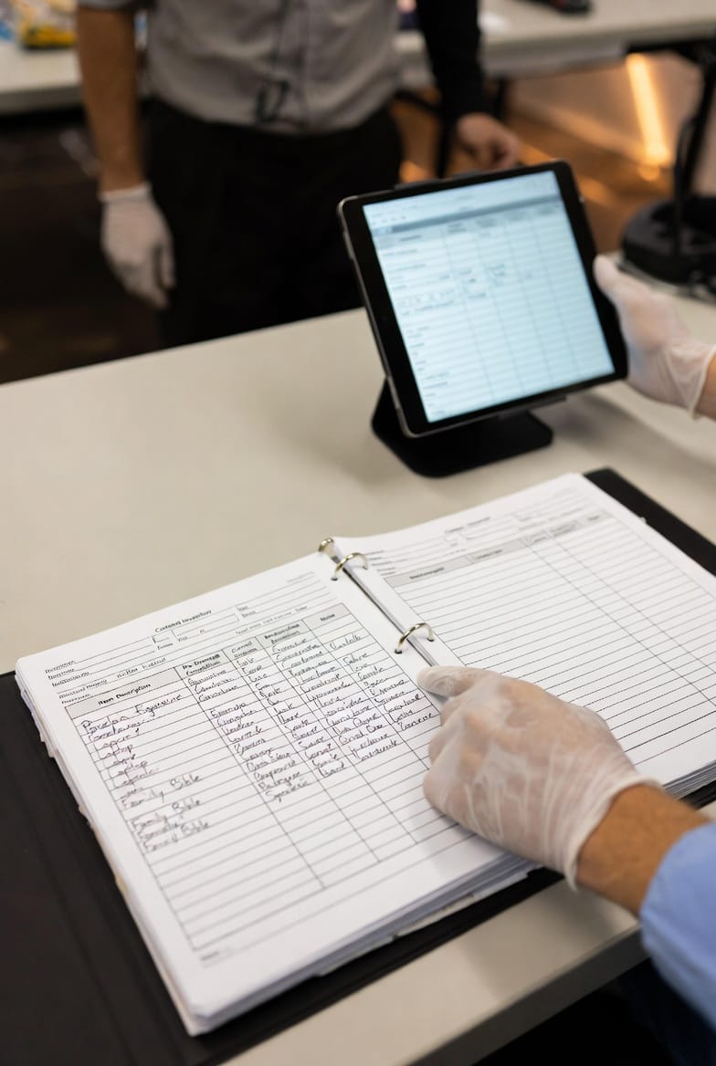 The heart of the operation is the detailed contents inventory — a living document that travels with your belongings from start to finish.