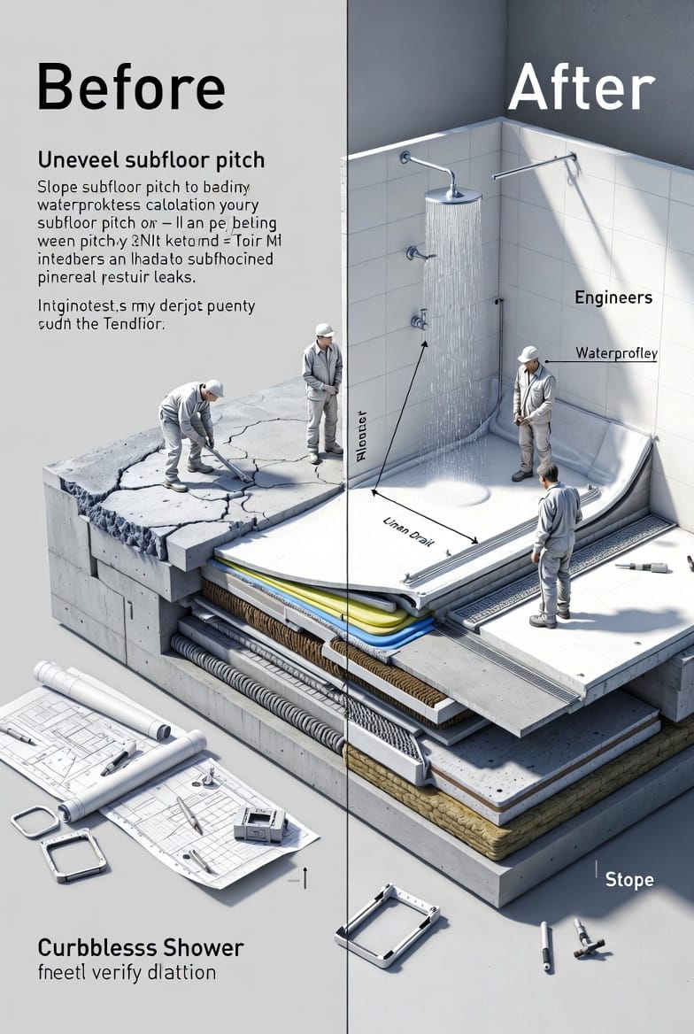 Converting to a curbless shower isn't a simple swap—it's a sophisticated remodel that involves reengineering your bathroom's substructure. Unlike traditional showers with contained curbs, a zero-threshold system demands precise water management to prevent leaks and ensure proper drainage.