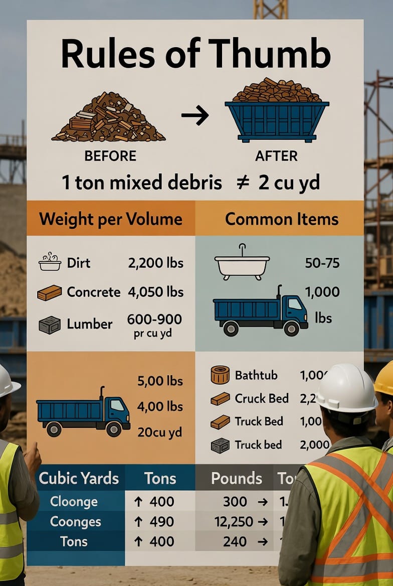 Keep a digital or printed cheat sheet handy. These approximations shine during initial planning calls with your dumpster rental provider.