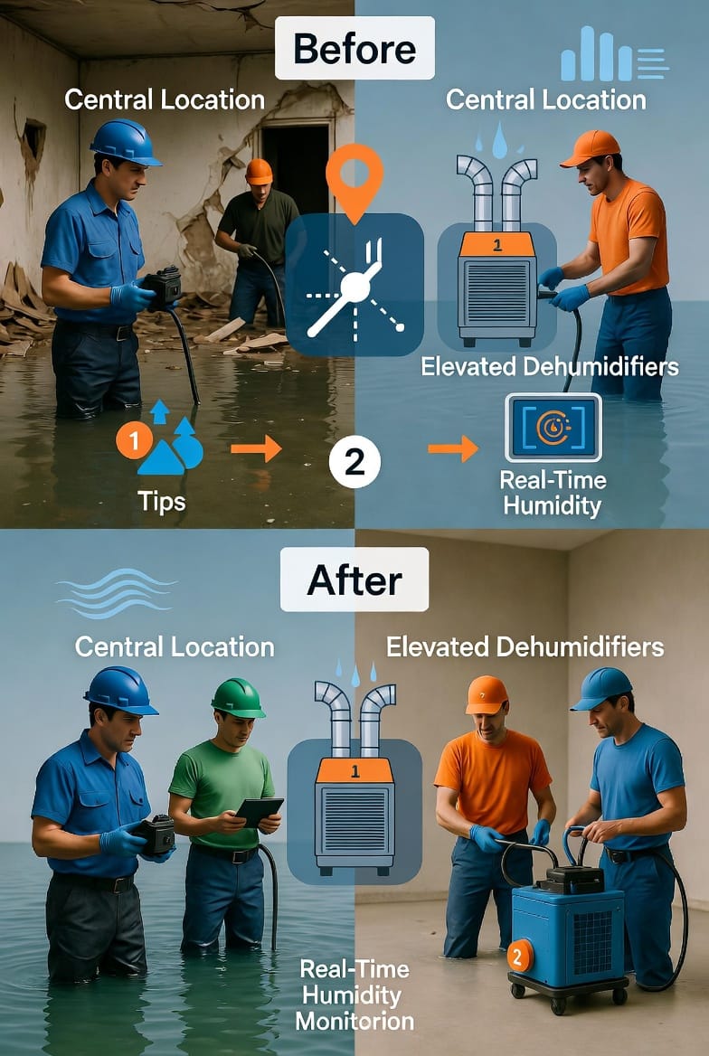 The dehumidifier placement strategy outlined here is more than best practice — it is the proven path to faster, safer, and more complete structural drying. Central locations, proper elevation, exhaust clearance, and engineered air circulation patterns work together to deliver results you can measure and trust.