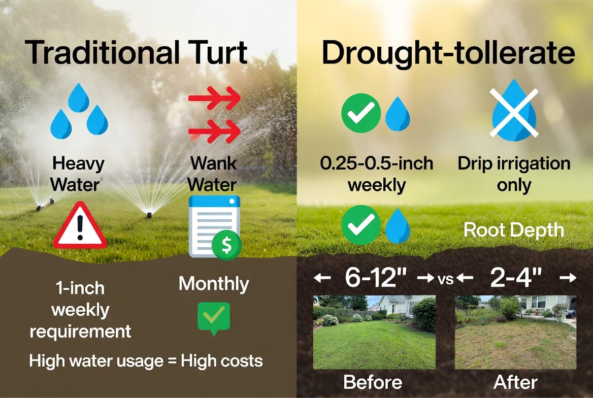 Once roots take hold, reduce watering gradually. Within one full growing season, your new drought-tolerant lawn will be fully self-sufficient in most climates.