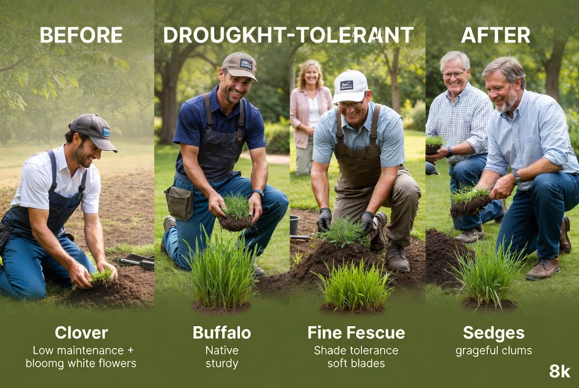Third, many options improve soil health. Clover, for instance, naturally fixes nitrogen, eliminating the need for synthetic fertilizers. You’ll also enjoy reduced mowing frequency, lower fuel or equipment costs, and fewer chemical applications. Most importantly, these sustainable choices give you peace of mind: your lawn will look beautiful even during the driest months, protecting your property value and neighborhood appeal.