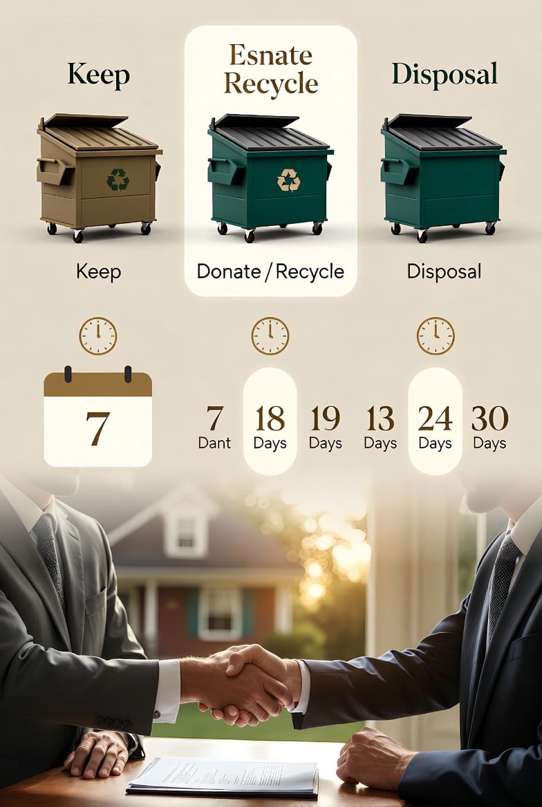 Consider a recent family who faced clearing their parents’ 4,000-square-foot home within a tight probate window. With our estate cleanout dumpster solution, they retained cherished antiques and photo collections, donated more than 60 boxes of clothing and kitchenware to local shelters, recycled electronics and metals, and completed the entire project in just 12 days.