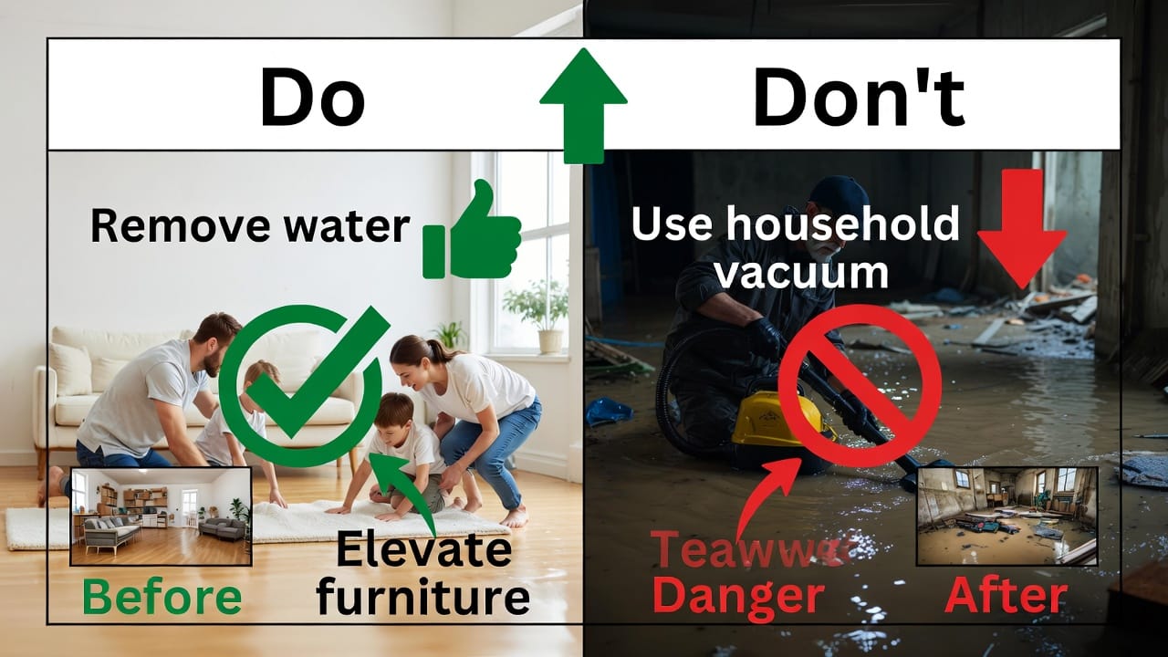 - Don't Use Electrical Appliances: Plugging in a vacuum or fan in wet areas risks electrocution—leave extraction to pros with safe equipment.