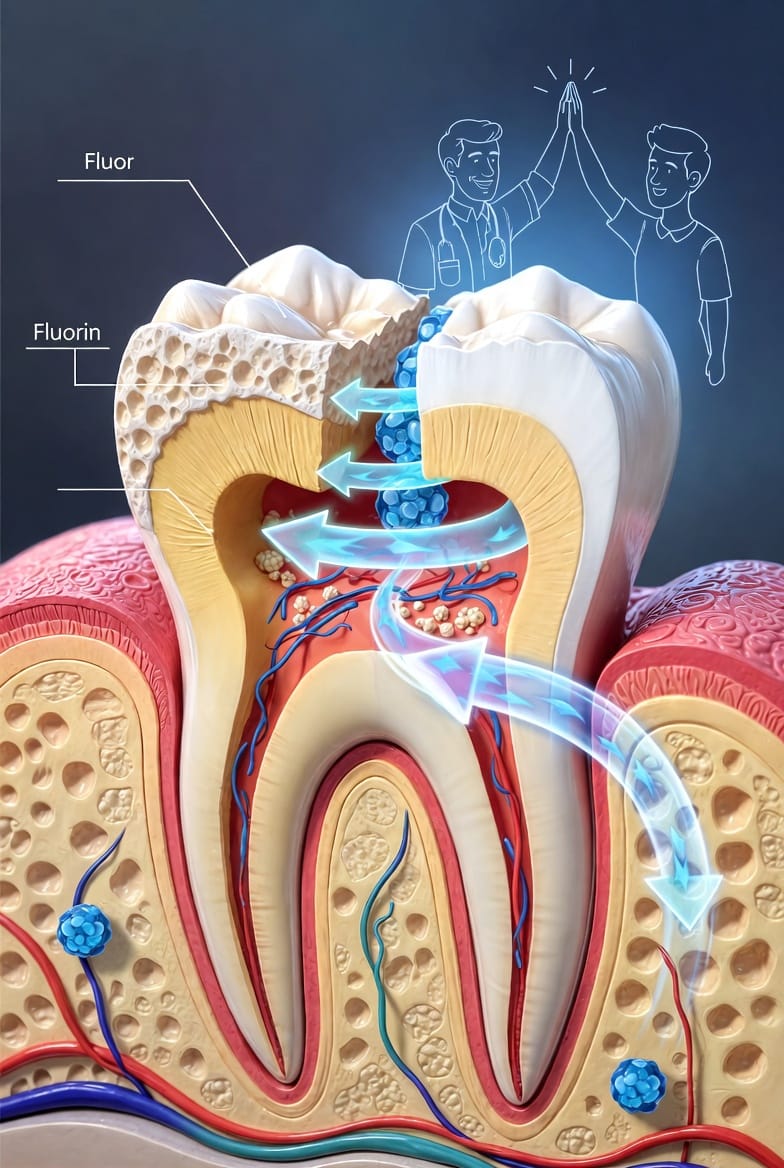 Topical fluoride works directly on the surface of erupted teeth, while systemic fluoride supports tooth development from within during formation. Both approaches complement each other beautifully when balanced properly.