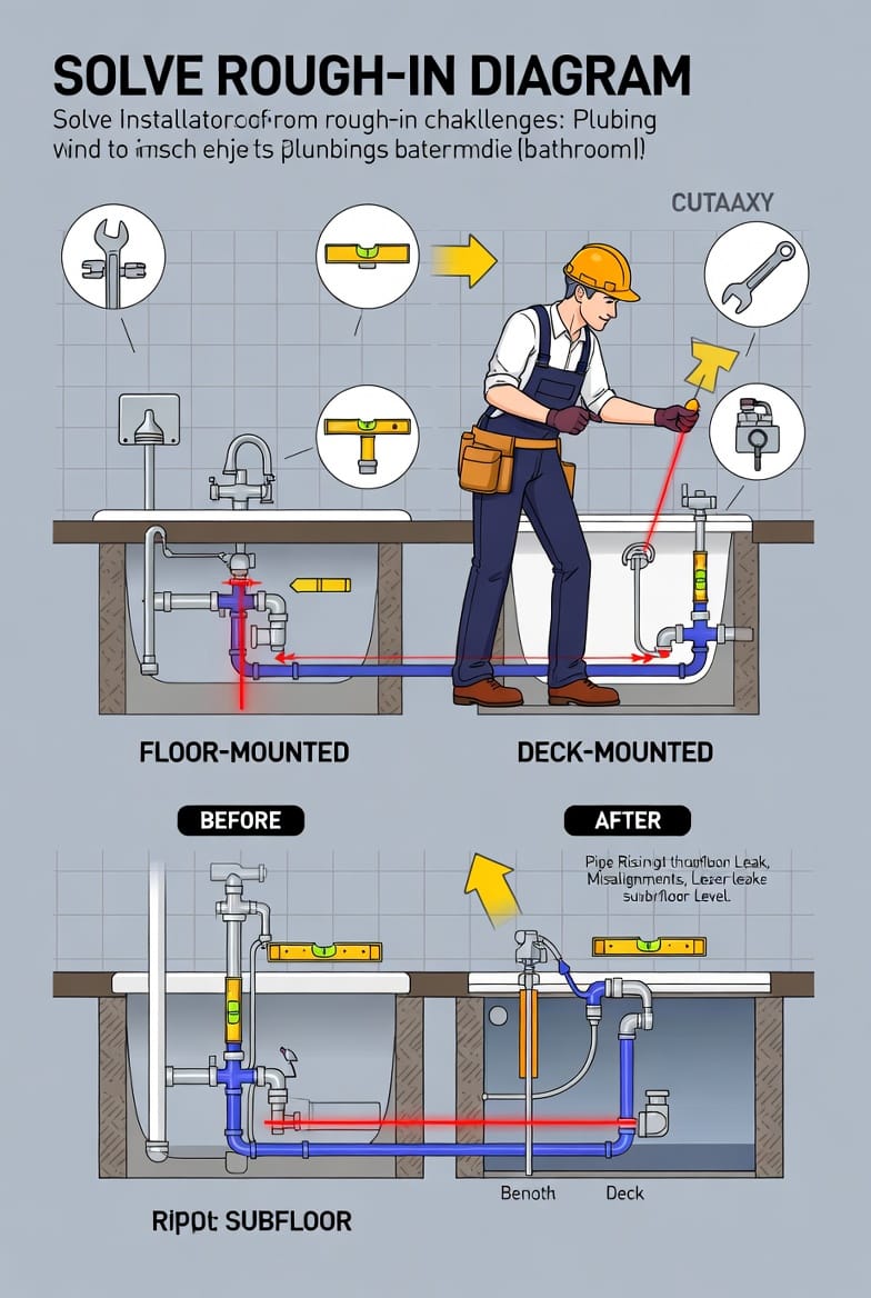 Deck-mounted faucets bypass most of these challenges. The plumber simply connects supply lines beneath the tub after it is set in place. This flexibility is especially valuable in renovations where existing floor joists or concrete slabs limit options.