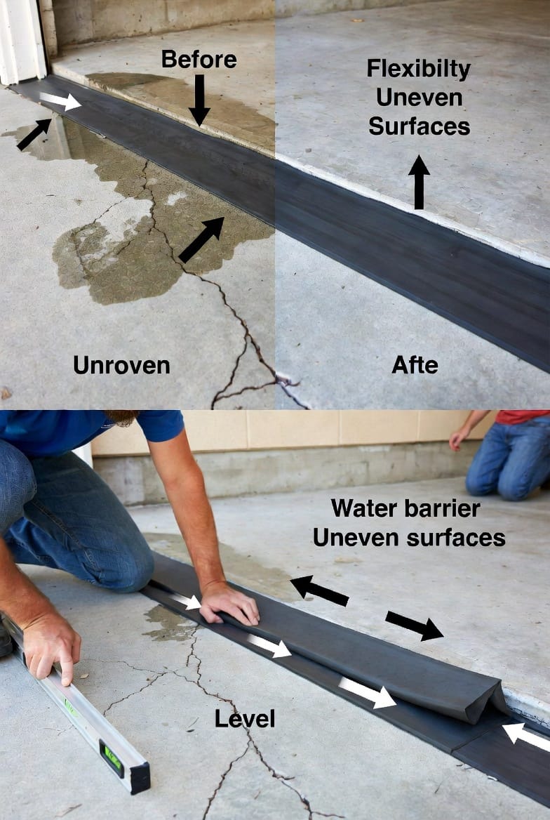 Its compressible rubber core adapts to surface irregularities up to ¾ inch deep, maintaining contact across the entire width of the door. Homeowners with older garages or floors that have settled over time consistently report complete elimination of water intrusion after installation.