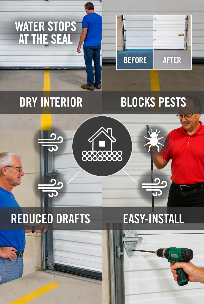 When heavy rain pounds your roof and wind drives debris against your garage, the bottom gap under your garage door becomes the weakest point in your home’s defense. Water seeps in, leaves pile up, and pests find an easy entry. The solution is simple, effective, and installed on the floor—not the door.