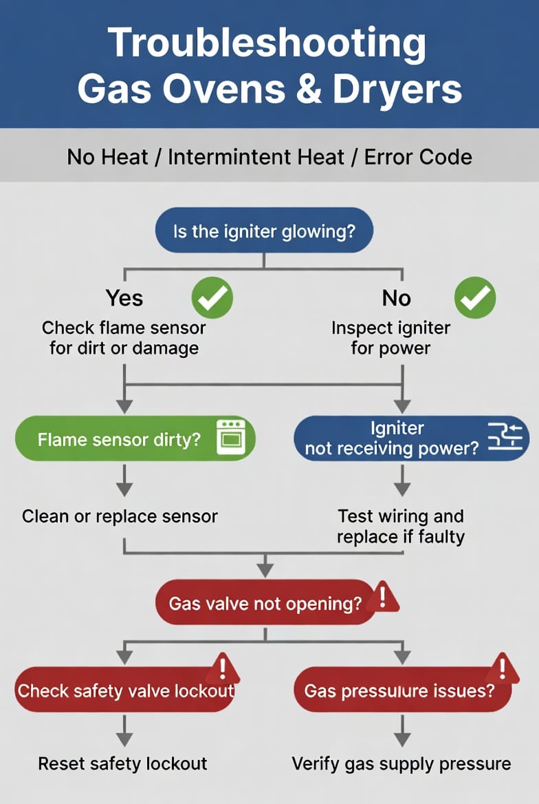 The Gas Appliance Conundrum: Diagnosing Ignition, Flame Sensor, and Safety Valve Issues in Ovens and Dryers