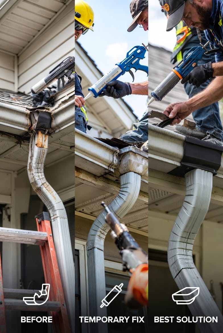 When addressing a compromised gutter end cap, homeowners have three progressive options, each with distinct advantages: