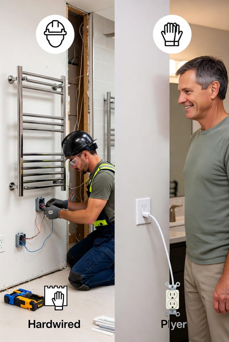 Choosing between hardwired electric towel warmers and plug-in models comes down to your specific bathroom remodeling goals, timeline, and design priorities. Here’s a clear breakdown to guide your decision: