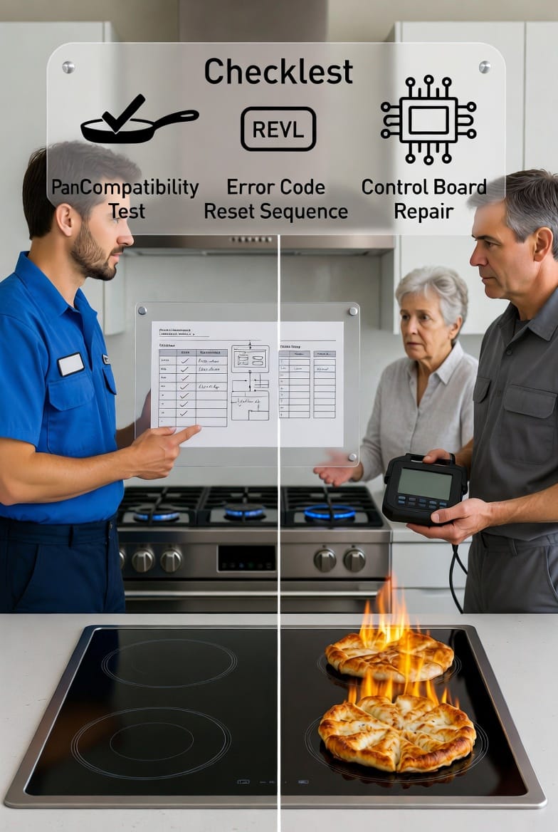 Even the most reliable induction cooktop can develop issues over time. The most frequent complaint is pan detection failure. The unit powers on but refuses to heat or displays a flashing “U” or “no pan” message. This usually stems from incompatible cookware that lacks sufficient ferromagnetic content. A quick magnet test on the pan base confirms compatibility. In other cases, the pan is fine but the detection sensors or coil alignment have drifted, requiring professional recalibration.