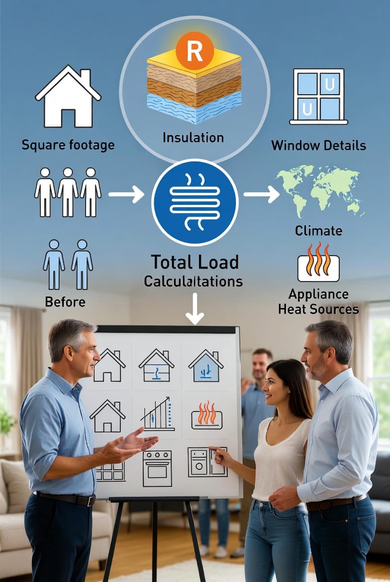 - Infiltration and ductwork efficiency: Air leaks around doors, windows, and poorly sealed ducts can add up to 30% more load if not properly addressed.