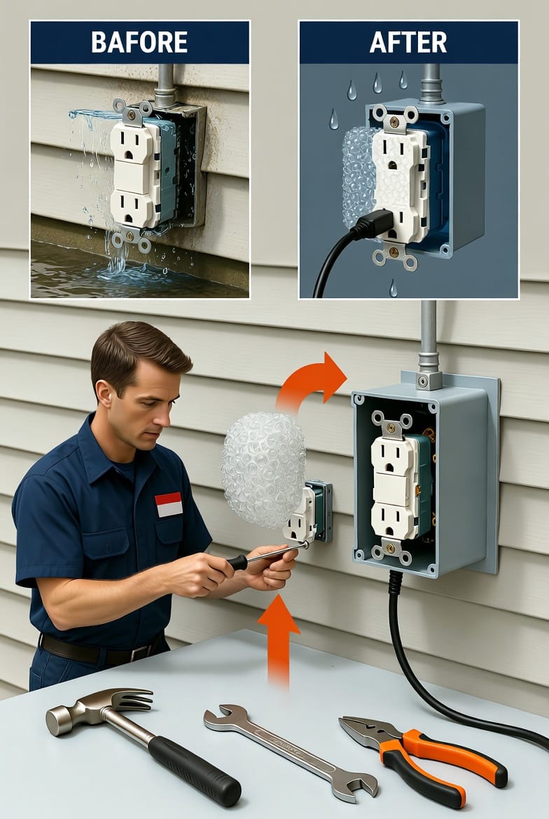 Many DIY attempts fall short in subtle but dangerous ways. Using a standard cover instead of an in-use bubble cover, skipping the box gasket, or installing the outlet upside down are frequent errors. Each mistake creates a direct path for water.