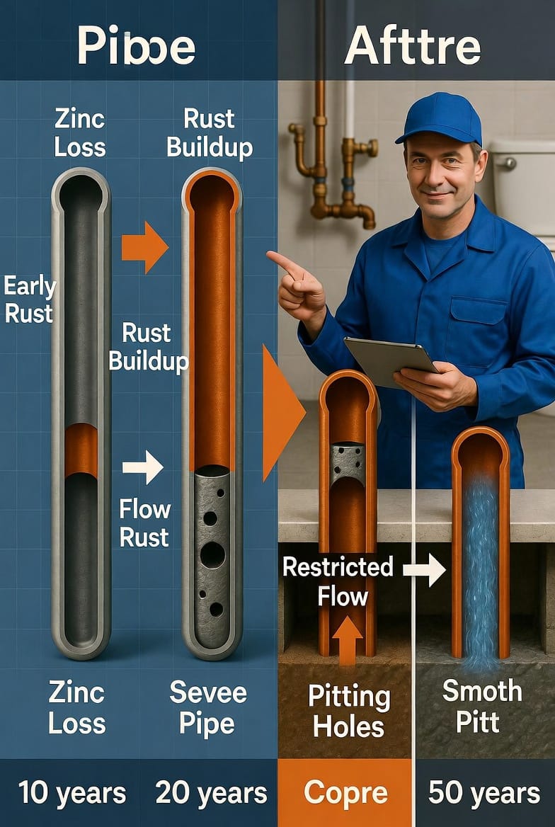 Understanding the distinct behaviors of copper and galvanized pipes helps you choose the right long-term solution.