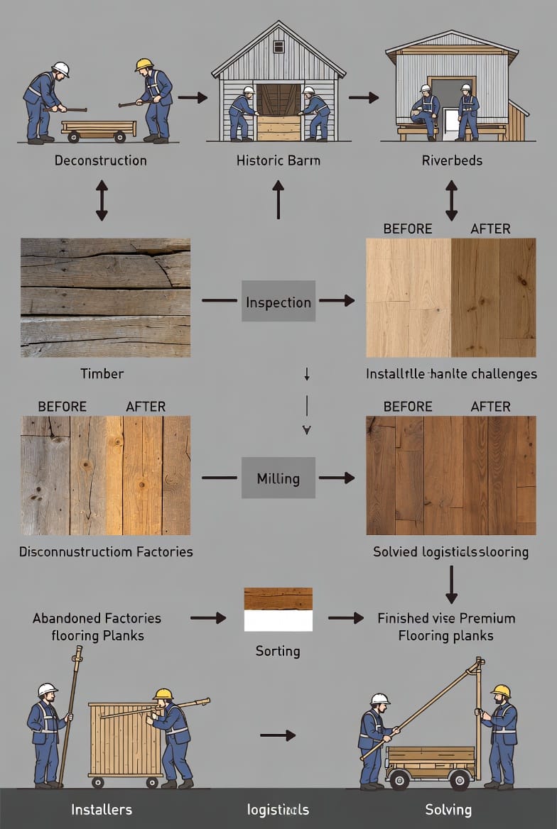 These materials are carefully deconstructed, inspected, and milled into premium flooring. The process respects the wood’s history while preparing it for modern homes. Because the wood is already seasoned, it offers superior stability compared to freshly cut timber when properly handled.