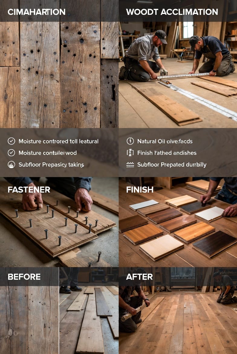 Successful reclaimed wood flooring installation follows a proven sequence: