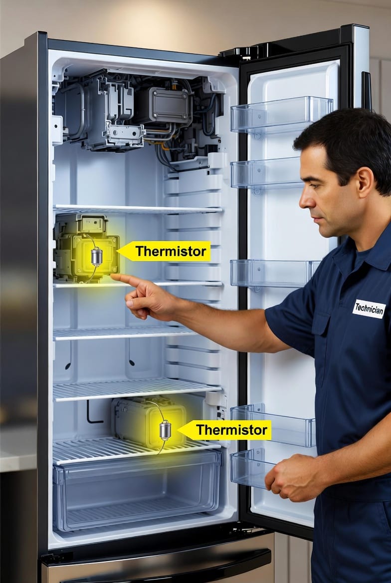These symptoms often appear gradually, which is why many homeowners initially blame the thermostat or assume the refrigerator simply needs “more time to cool.” In reality, the refrigerator thermistor is frequently the hidden culprit.