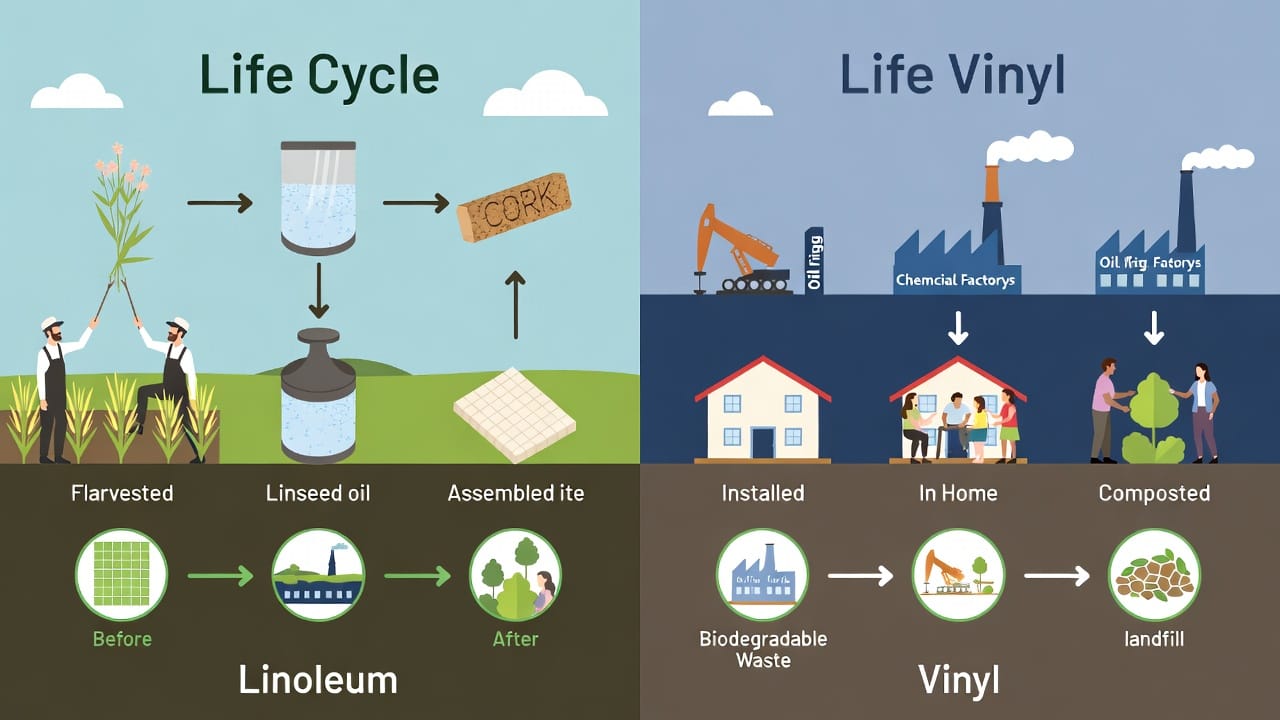 - Sustainability: Linoleum scores high with renewable materials and biodegradability; vinyl relies on non-renewables and persists in landfills.