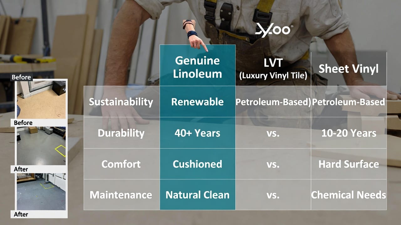 Crucially, distinguish genuine linoleum from vinyl. Vinyl flooring, including LVT and PVC sheets, is petroleum-based plastic. It's synthetic, often containing phthalates and volatile organic compounds (VOCs) that can off-gas and affect indoor air quality. Linoleum, by contrast, is VOC-free and made from 97% natural materials. If a product claims to be "linoleum" but feels plasticky or has a strong chemical smell, it's likely vinyl in disguise. Always check certifications like Cradle to Cradle or FloorScore to ensure authenticity.
