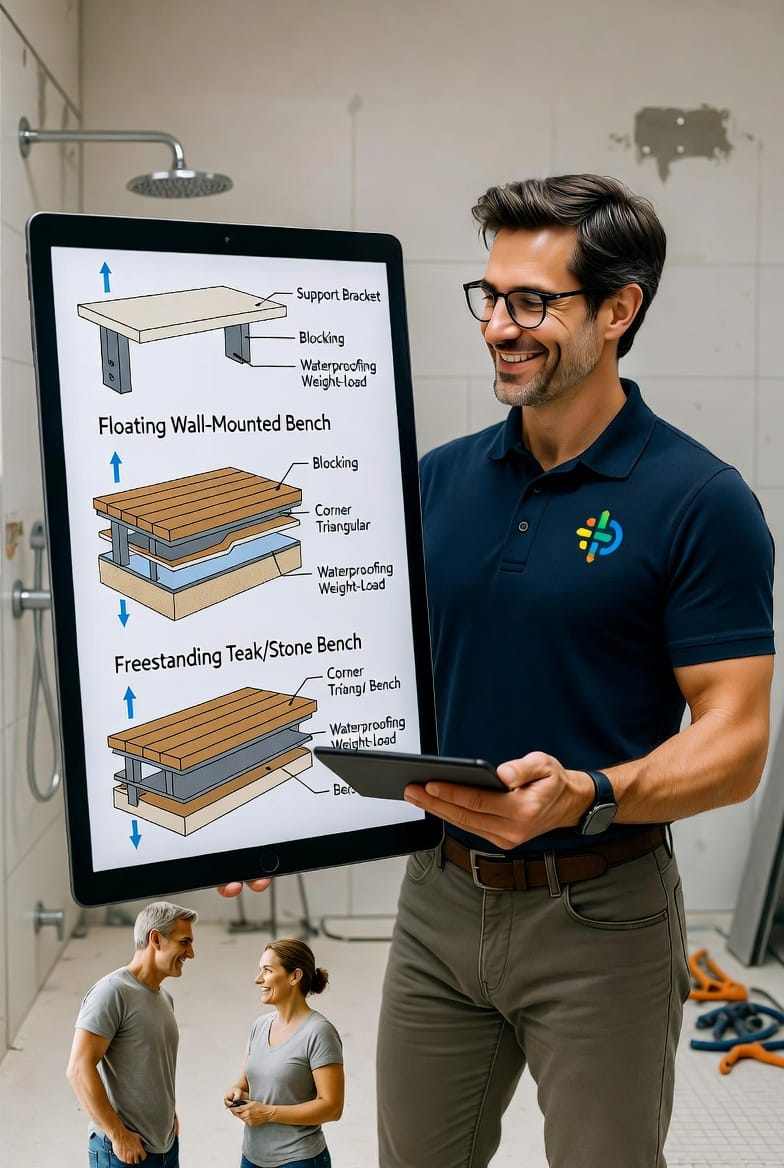 Floating shower benches mount directly to the wall with no visible legs. Corner benches maximize tight spaces with a triangular shape. Freestanding benches offer flexibility and can be moved or removed easily. Each type demands precise planning, but when installed correctly, they deliver years of reliable service.