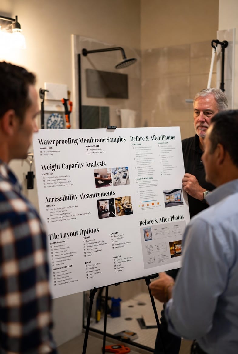 Professional shower bench installation follows a proven sequence that protects your investment.