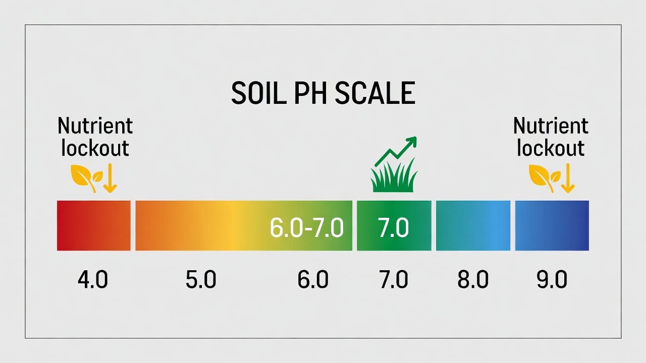 Soil pH measures acidity or alkalinity on a scale from 0 to 14, with 7.0 neutral. For most turfgrasses (cool-season types like Kentucky bluegrass, fescue, and ryegrass, or warm-season varieties like Bermuda and Zoysia), the optimal pH range falls between 6.0 and 7.0. This slightly acidic to neutral zone maximizes nutrient availability.