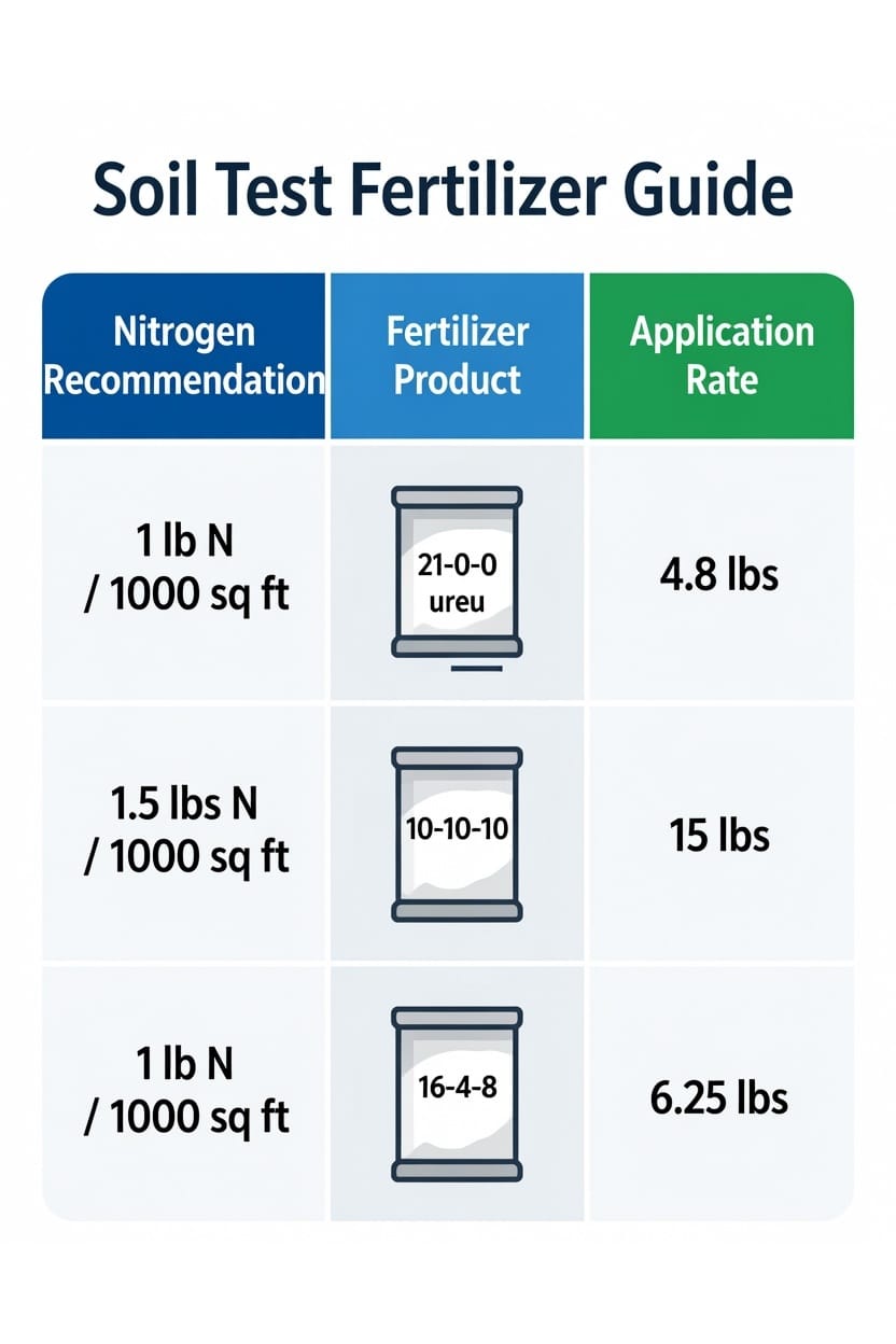 Soil test reports include practical guidelines, such as "apply 1 lb N per 1,000 sq ft." Match this to fertilizer bags by calculating based on the product's N-P-K analysis.