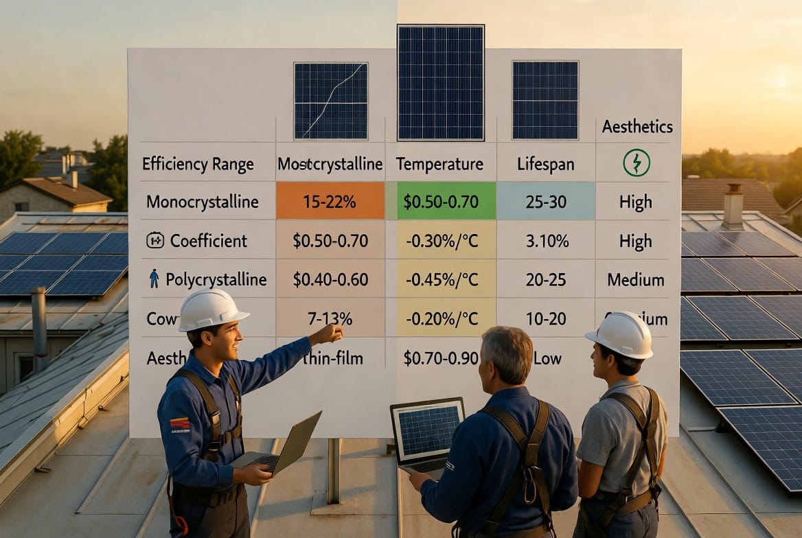 Solar panel efficiency isn’t just a lab number — it’s the key to how much clean energy your roof actually produces and how quickly you see savings on your electricity bill. In today’s competitive solar market, homeowners face a clear choice: chase maximum output with premium technology or balance performance with budget. This guide breaks down the efficiency race between monocrystalline, polycrystalline, and thin-film cell technologies, explains what those ratings really mean in everyday use, and equips you with the knowledge to make the smartest decision for your home.