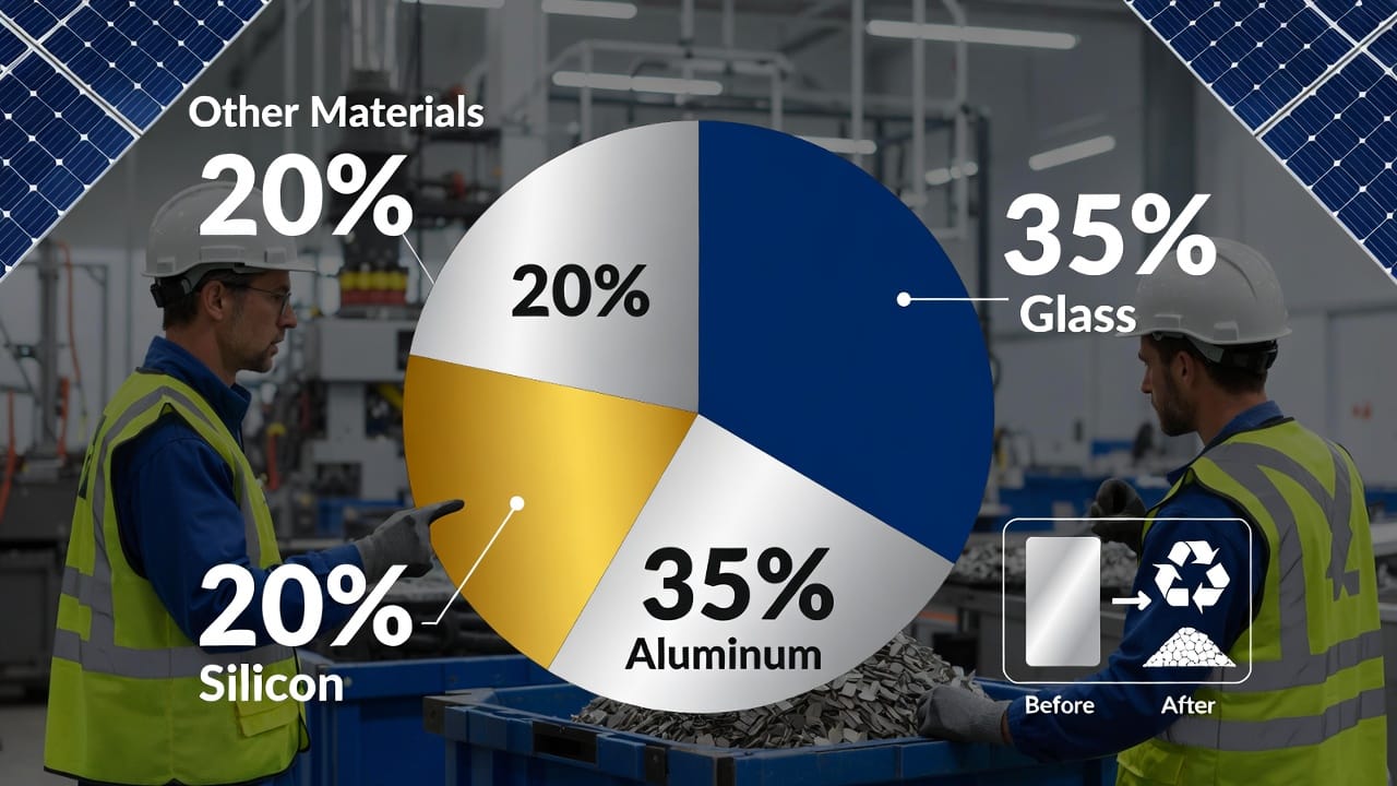These percentages reveal why solar panel recycling recovers such high value. The thick tempered glass protects the cells and can be melted and reformed into new panels or windows. The aluminum frame is 100 % recyclable into new frames or countless other products. Silicon cells, the heart of power generation, can be purified and reused in fresh modules. Even the smaller fractions — copper, silver, and plastics — hold economic worth when separated correctly.