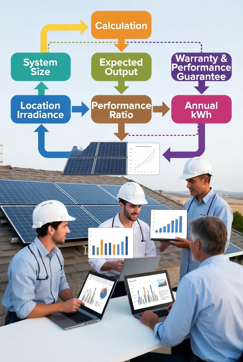 Before any guarantee is issued, engineers build a precise performance model. They begin with your system size in kilowatts (kW), then layer in location-specific solar irradiance data from long-term weather databases. Factors such as panel tilt, azimuth (compass direction), and local climate variations are fed into sophisticated simulation software.