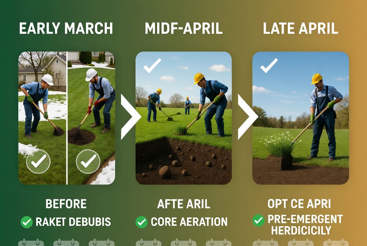 At our lawn care service, we’ve helped thousands of homeowners turn tired winter lawns into show-stopping green carpets. In this comprehensive guide, we walk you through every essential step with clear timing, proven techniques, and expert tips. Follow along and give your lawn the strong start it deserves.
