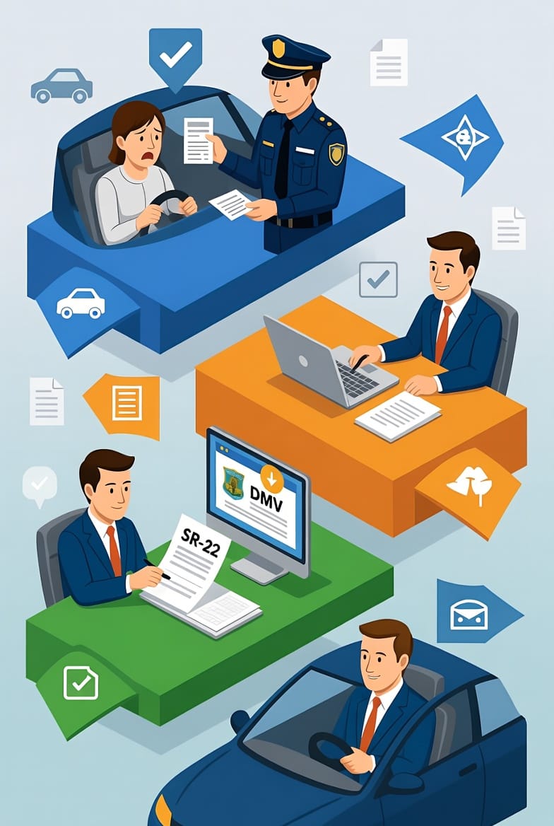 The SR-22 filing process follows a logical, manageable sequence designed to restore your privileges efficiently. First, a violation occurs that triggers the DMV or court requirement. You receive official notice of the need for proof of financial responsibility.