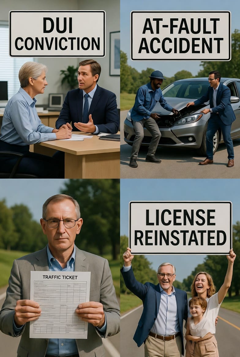 - Multiple traffic violations — Accumulating too many points through speeding tickets, reckless driving, or other infractions can result in license suspension and subsequent SR-22 needs.