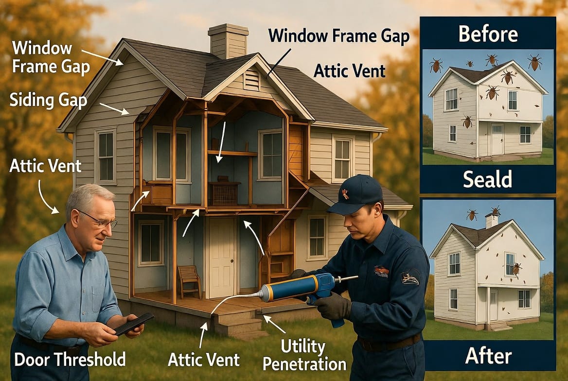 Interior treatments focus on safe removal and residual protection in key zones. Exterior barrier sprays create an invisible shield that deters bugs from landing and crawling. Combined with sealing, these treatments deliver reliable seasonal stink bug management.