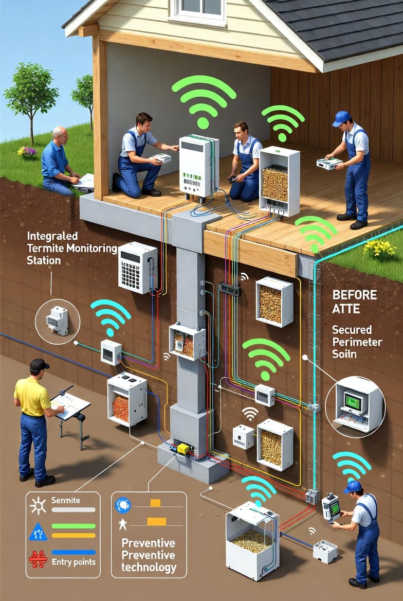 To tie it all together, integrated termite monitoring stations form the backbone of long-term prevention. These systems combine sensors, baits, and data analytics to detect termites before they infiltrate your structure. Installed around the perimeter, stations use attractants to lure termites, then alert via apps or remote monitoring when activity is detected.
