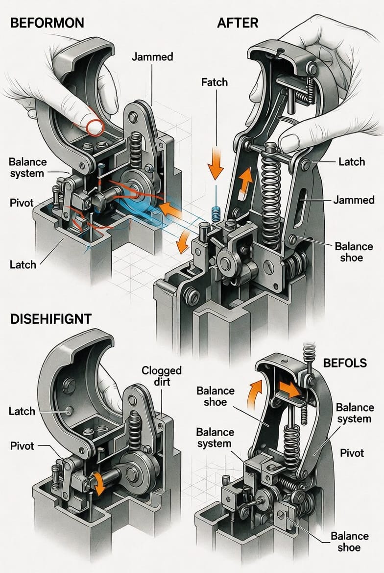 - Debris Buildup: Dirt in tracks can cause sticking, leading to forced movements that damage latches.