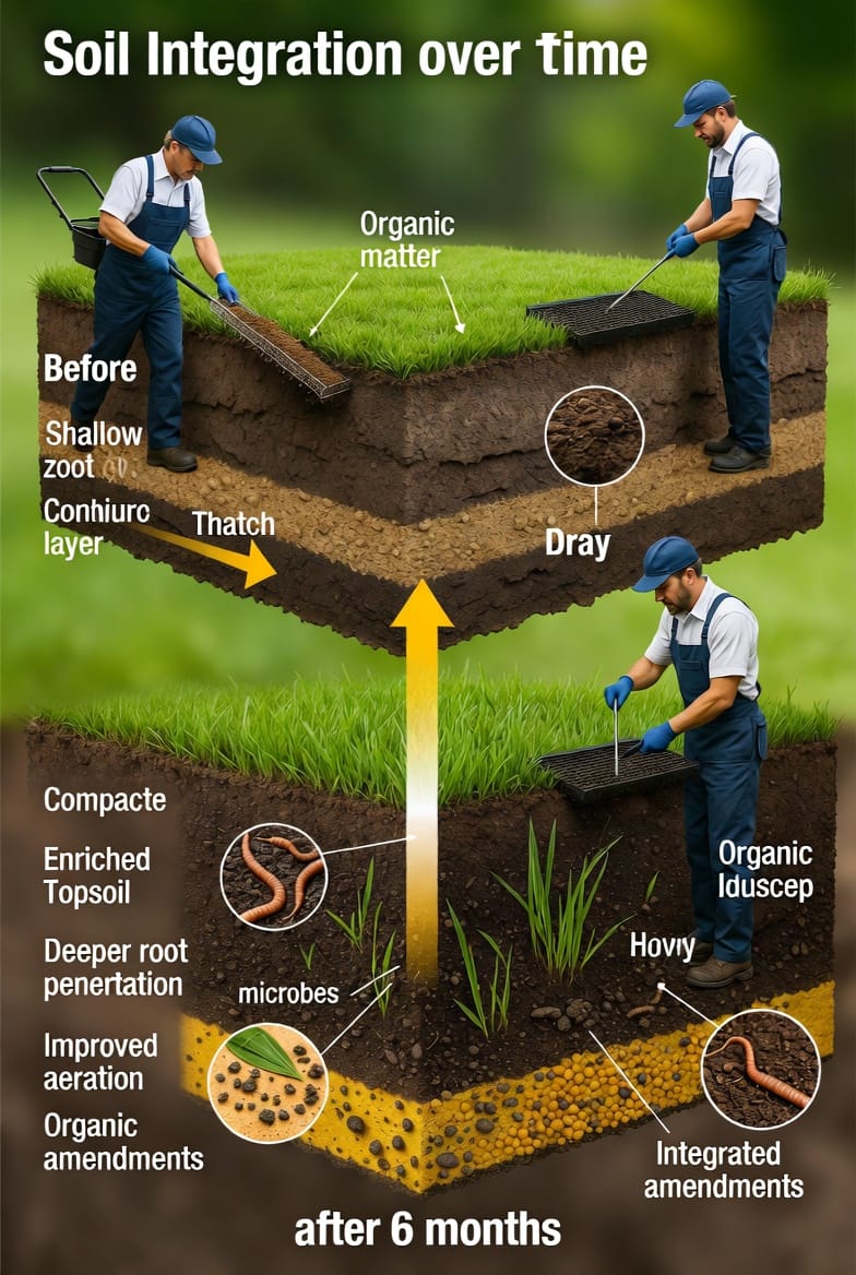 This gentle soil amendment approach is especially valuable in established lawns where heavy machinery would cause more harm than good. Over a single season, repeated or well-timed topdressing applications can increase organic matter content by 1–3 %, enhance microbial activity, and create a healthier growing environment for your turf. The result is a lawn that is better equipped to withstand drought, heavy foot traffic, and temperature extremes.