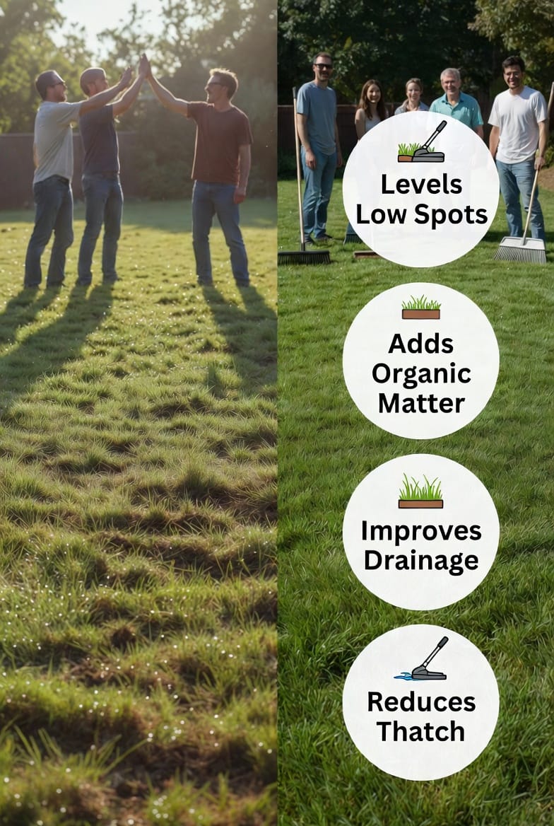 Professional lawn care teams rely on topdressing because the advantages are both immediate and long-lasting. Here are the primary benefits you can expect: